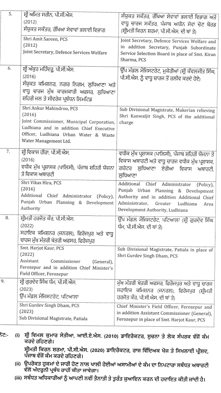 ਪੰਜਾਬ ਸਰਕਾਰ ਵੱਲੋਂ 9 IAS ਅਤੇ PCS ਅਫ਼ਸਰਾਂ ਦਾ ਤਬਾਦਲਾ, ਪੜ੍ਹੋ ਲਿਸਟ All Latest NewsNews FlashPunjab News July 17, 2025 Media PBN Staff Punjab News: ਪੰਜਾਬ ਸਰਕਾਰ ਦੇ ਵੱਲੋਂ 9 ਆਈਏਐਸ ਅਤੇ ਪੀਸੀਐਸ ਅਫ਼ਸਰਾਂ ਦਾ ਤਬਾਦਲਾ ਕੀਤਾ ਗਿਆ ਹੈ। ਹੇਠਾਂ ਪੜ੍ਹੋ ਲਿਸਟ