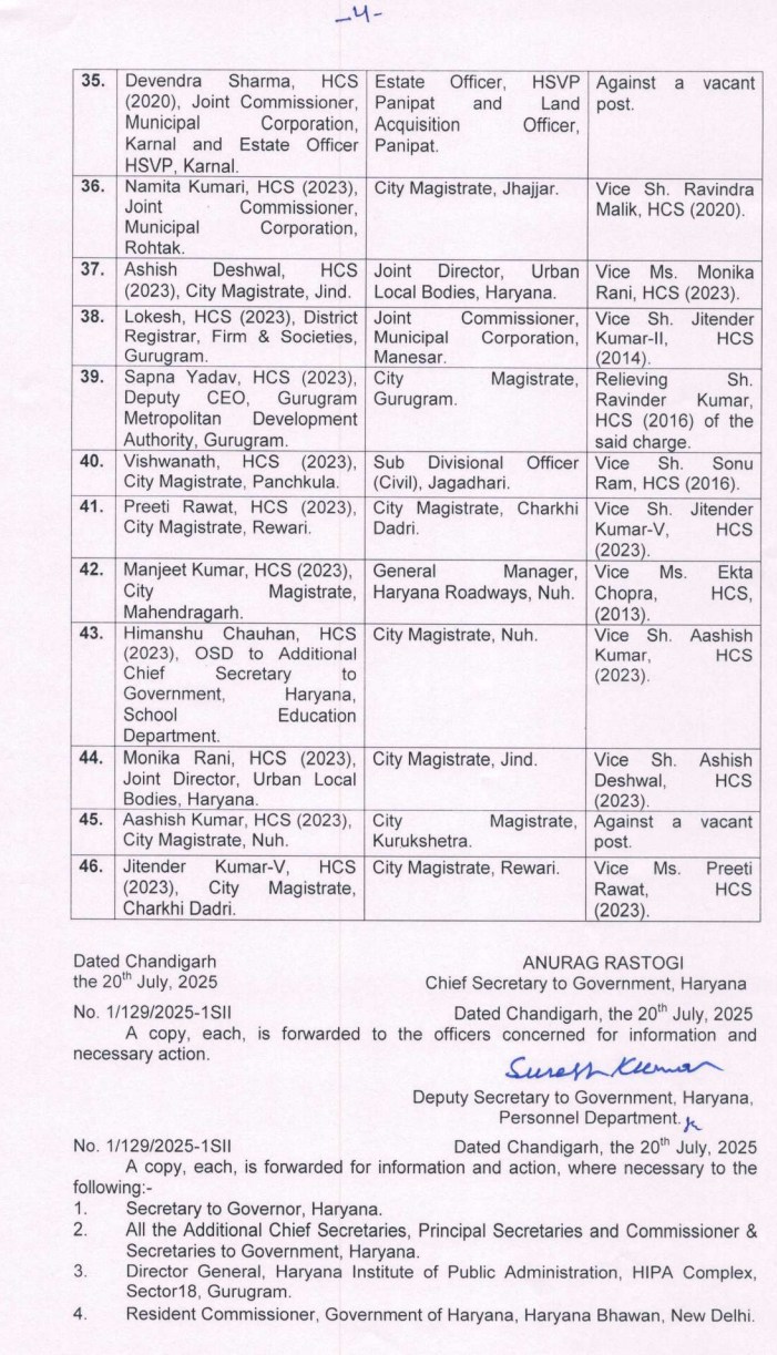 Haryana Breaking: 46 IAS ਅਤੇ HCS ਅਫ਼ਸਰਾਂ ਦੇ ਤਬਾਦਲੇ, ਪੜ੍ਹੋ ਪੂਰੀ ਲਿਸਟ All Latest NewsGeneral NewsNational NewsNews FlashTop BreakingTOP STORIES July 20, 2025 Media PBN Staff Haryana Breaking: ਹਰਿਆਣਾ ਸਰਕਾਰ ਦੇ ਵੱਲੋਂ ਵੱਡੇ ਪੱਧਰ ਤੇ ਪ੍ਰਸਾਸ਼ਨਿਕ ਫੇਰਬਦਲ ਕੀਤਾ ਗਿਆ ਹੈ। ਅੱਜ 46 IAS ਅਤੇ ਐਚਸੀਐਸ ਅਫ਼ਸਰਾਂ ਦਾ ਤਬਾਦਲਾ ਕੀਤਾ ਗਿਆ ਹੈ। ਪੜ੍ਹੋ ਪੂਰੀ ਲਿਸਟ