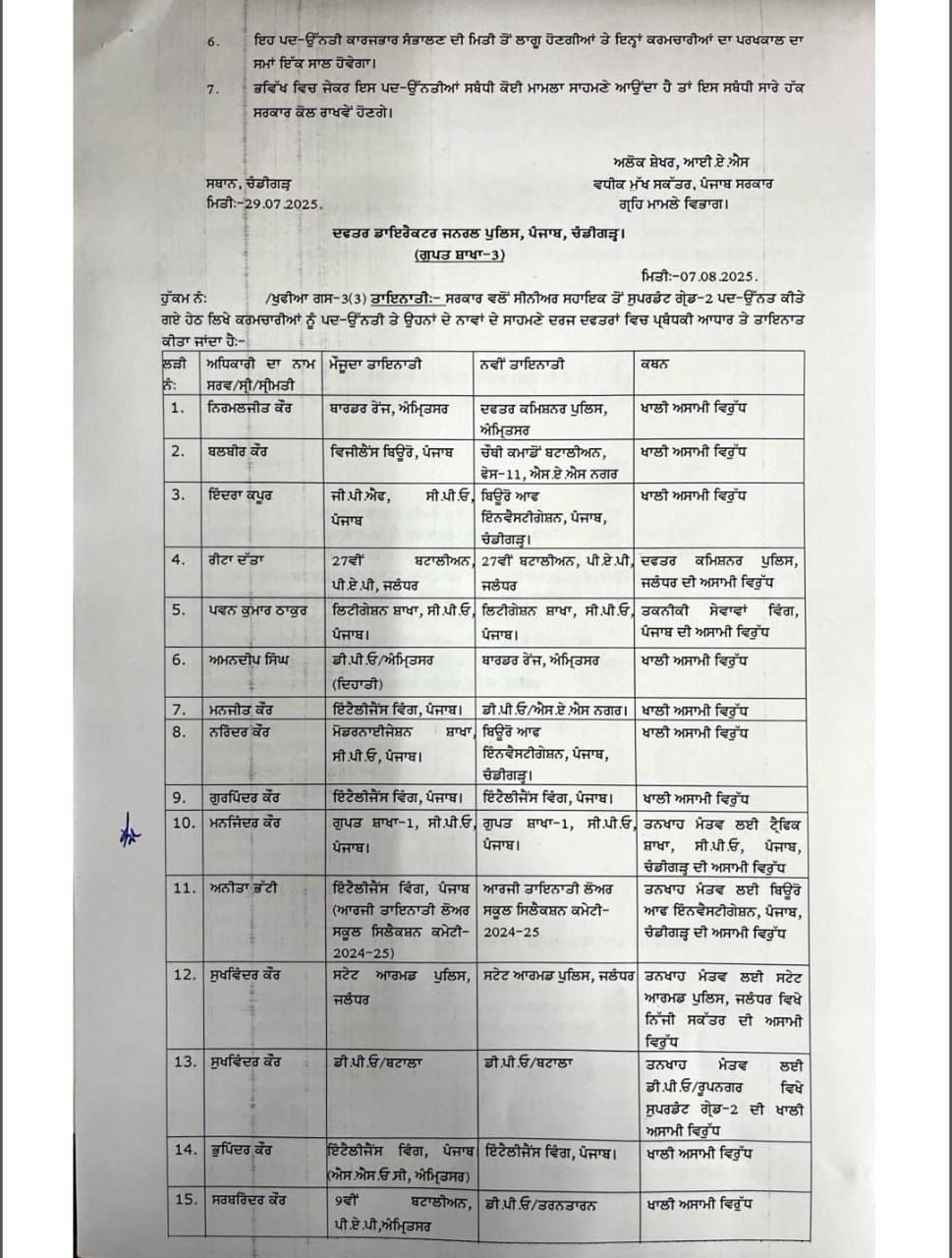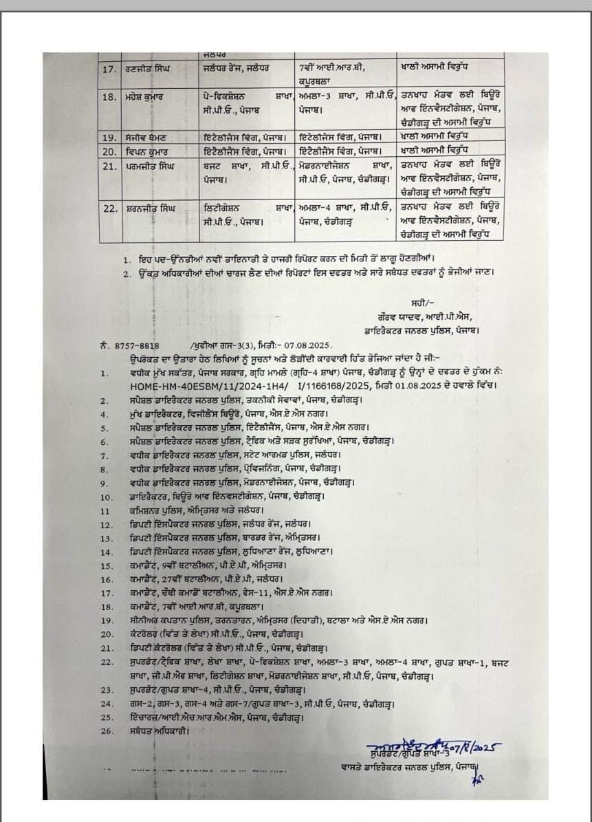 ਪੰਜਾਬ ਸਰਕਾਰ ਵੱਲੋਂ 22 ਅਧਿਕਾਰੀਆਂ ਦਾ ਤਬਾਦਲਾ, ਪੜ੍ਹੋ ਲਿਸਟ All Latest NewsNews FlashPunjab News August 8, 2025 Media PBN Staff Punjab News: ਪੰਜਾਬ ਸਰਕਾਰ ਦੇ ਵੱਲੋਂ 22 ਅਧਿਕਾਰੀਆਂ (ਸੁਪਰਡੰਟਾਂ) ਤਰੱਕੀ ਤੋਂ ਬਾਅਦ ਉਨ੍ਹਾਂ ਦਾ ਤਬਾਦਲਾ ਕੀਤਾ ਗਿਆ ਹੈ। ਹੇਠਾਂ ਪੜ੍ਹੋ ਪੂਰੀ ਲਿਸਟ