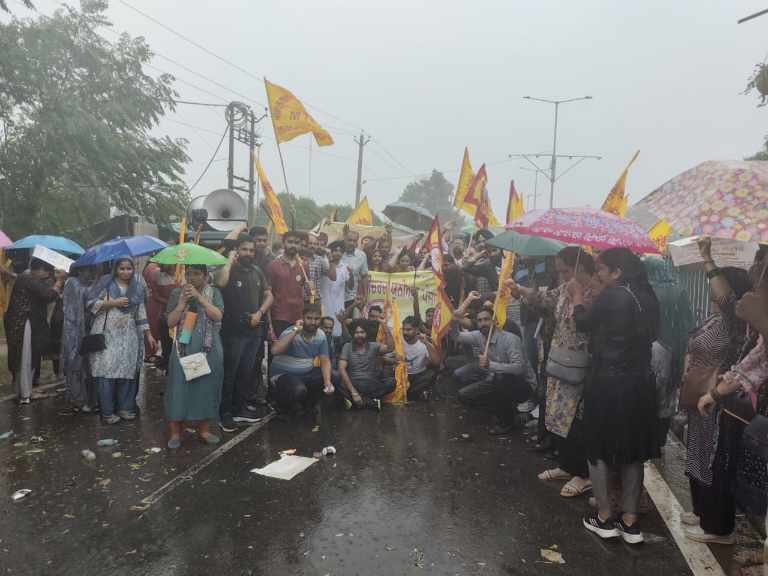 ਵਰਦੇ ਮੀਂਹ ‘ਚ ਮੈਰੀਟੋਰੀਅਸ ਟੀਚਰਾਂ ਨੇ CM ਮਾਨ ਦੀ ਕੋਠੀ ਦਾ ਕੀਤਾ ਘਿਰਾਓ, ਪੁਲਿਸ ਨਾਲ ਹੋਈ ਧੱਕਾਮੁੱਕੀ! ਬੈਰੀਕੋਡ ਤੋੜਦਿਆਂ ਕਈ ਅਧਿਆਪਕ ਸੜਕ ‘ਤੇ ਡਿੱਗੇ