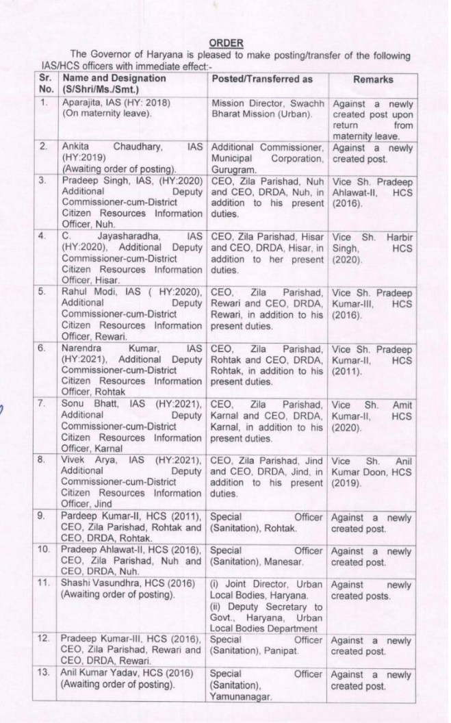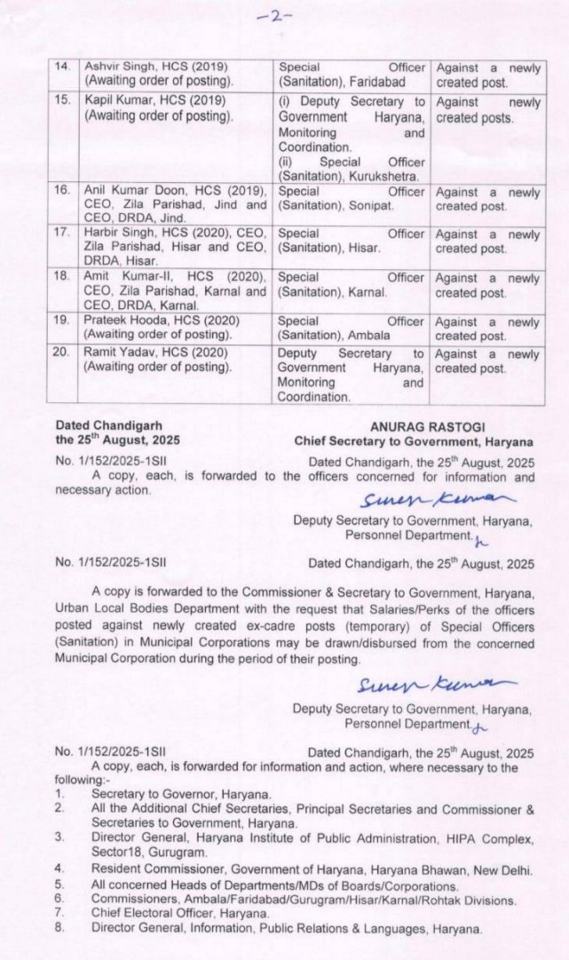 ਵੱਡੀ ਖ਼ਬਰ: Haryana ਸਰਕਾਰ ਵੱਲੋਂ 20 IAS ਅਤੇ HCS ਅਫ਼ਸਰਾਂ ਦਾ ਤਬਾਦਲਾ, ਪੜ੍ਹੋ ਲਿਸਟ All Latest NewsNews FlashPunjab News August 25, 2025 Media PBN Staff Haryana News: ਹਰਿਆਣਾ ਸਰਕਾਰ ਦੇ ਵੱਲੋਂ 20 ਆਈਏਐਸ ਅਤੇ ਐਚਸੀਐਸ ਅਫ਼ਸਰਾਂ ਦਾ ਤਬਾਦਲਾ ਕੀਤਾ ਗਿਆ ਹੈ। ਹੇਠਾਂ ਪੜ੍ਹੋ ਲਿਸਟ