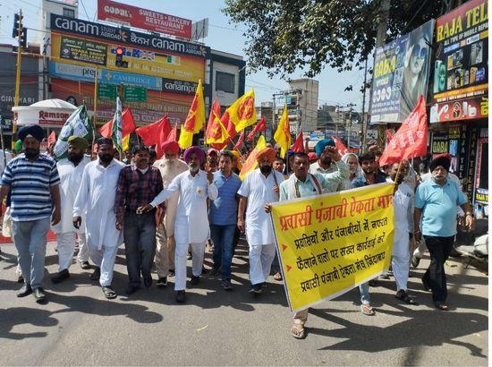 Punjab News: ਪਰਵਾਸੀ-ਪੰਜਾਬੀ ਏਕਤਾ ਮੰਚ ਵਲੋਂ ਨਵਾਂਸ਼ਹਿਰ ਵਿਖੇ ਏਕਤਾ ਮਾਰਚ ਕਰਕੇ ਪੰਜਾਬੀਆਂ ਅਤੇ ਪਰਵਾਸੀਆਂ ਦੀ ਸਾਂਝ ਨੂੰ ਹੋਰ ਪਕੇਰਾ ਕਰਨ ਦਾ ਸੱਦਾ ਦਿੱਤਾ। ਸੰਯੁਕਤ ਕਿਸਾਨ ਮੋਰਚਾ, ਇੰਡੀਅਨ ਫੈਡਰੇਸ਼ਨ ਆਫ ਟਰੇਡ ਯੂਨੀਅਨਜ਼ (ਇਫਟੂ) ,ਪੇਂਡੂ ਮਜਦੂਰ ਯੂਨੀਅਨ,ਪਰਵਾਸੀ ਮਜਦੂਰ ਯੂਨੀਅਨ, ਉਸਾਰੀ ਮਿਸਤਰੀ ਮਜਦੂਰ ਯੂਨੀਅਨ, ਰੇਹੜੀ ਵਰਕਰ ਯੂਨੀਅਨ, ਜੁਗਾੜੂ ਰੇਹੜਾ ਵਰਕਰ ਯੂਨੀਅਨ ਅਤੇ ਭੱਠਾ ਵਰਕਰ ਯੂਨੀਅਨ ਨੇ ਇਸ ਮਾਰਚ ਵਿਚ ਭਰਵੀਂ ਸ਼ਮੂਲੀਅਤ ਕੀਤੀ।