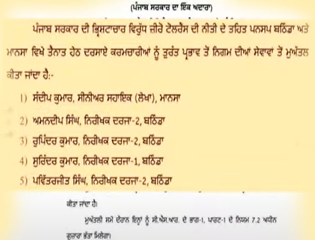 ਸਸਪੈਂਡ ਕੀਤੇ ਪੰਜ ਅਧਿਕਾਰੀਆਂ ਦੀ ਹੇਠਾਂ ਪੜ੍ਹੋ ਲਿਸਟ