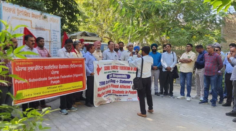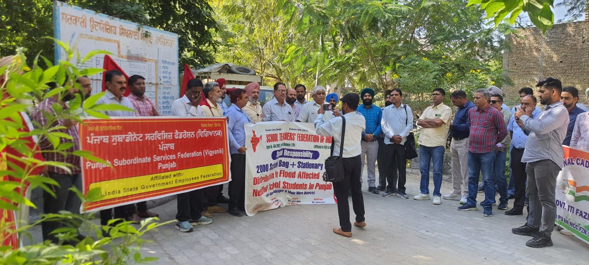 ਪੰਜਾਬ ਦੇ ਹੜ ਪ੍ਰਭਾਵਿਤ ਫ਼ਾਜ਼ਿਲਕਾ ਦੇ ਬਾਰਡਰ ਏਰੀਏ ਵਿਚ ਸਕੂਲ ਟੀਚਰਜ਼ ਫੈਡਰੇਸ਼ਨ ਆਫ ਇੰਡੀਆ ਅਤੇ ਪੰਜਾਬ ਸੁਬਾਰਡੀਨੇਟ ਸਰਵਿਸਿਜ਼ ਫੈਡਰੇਸ਼ਨ (ਵਿਗਿਆਨਿਕ) ਵੱਲੋਂ ਪੰਜ ਲੱਖ ਦੀ ਸਟੇਸ਼ਨਰੀ ਤੇ ਸਕੂਲ ਬੈਗ ਕਿੱਟਾਂ ਸਕੂਲਾਂ ਦੇ ਵਿਚ ਜਾ ਕੇ ਵੰਡੀਆਂ ਗਈਆਂ।