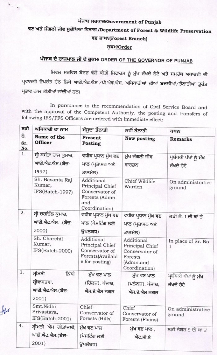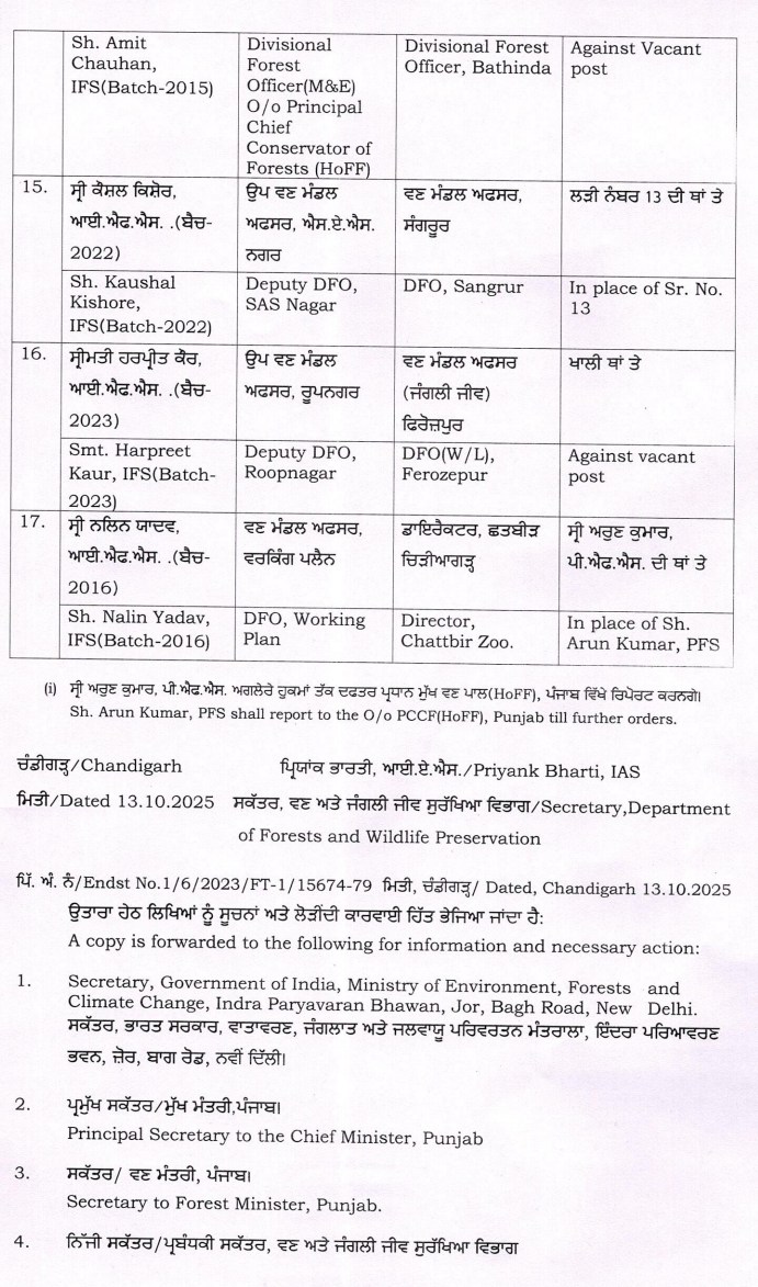 Punjab Transfers: ਪੰਜਾਬ ਸਰਕਾਰ ਵੱਲੋਂ 17 IFS/PFS ਅਫ਼ਸਰਾਂ ਦਾ ਤਬਾਦਲਾ, ਪੜ੍ਹੋ ਲਿਸਟ All Latest NewsNews FlashPunjab NewsTop BreakingTOP STORIES October 27, 2025 Media PBN Staff Punjab Transfers: ਪੰਜਾਬ ਸਰਕਾਰ ਦੇ ਵੱਲੋਂ 17 IFS/PFS ਅਫ਼ਸਰਾਂ ਦਾ ਤਬਾਦਲਾ ਦਾ ਕੀਤਾ ਗਿਆ ਹੈ। ਹੇਠਾਂ ਪੜ੍ਹੋ ਲਿਸਟ
