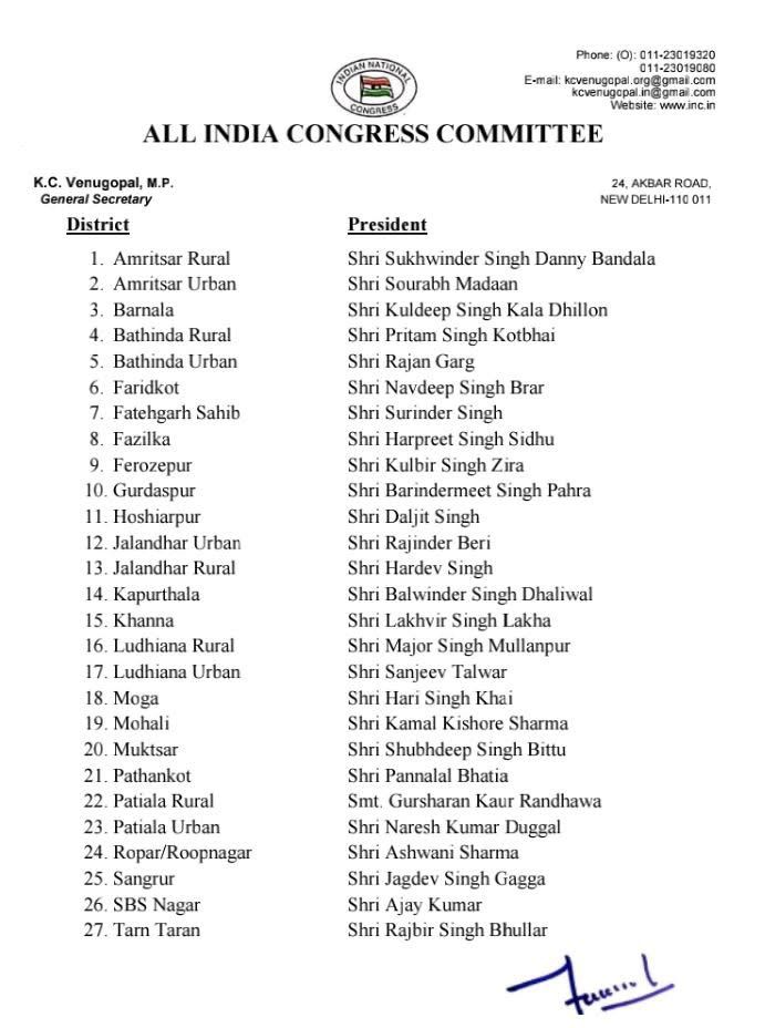 ਵੱਡੀ ਖ਼ਬਰ: ਪੰਜਾਬ ਕਾਂਗਰਸ ਨੇ ਕਈ ਜ਼ਿਲ੍ਹਿਆਂ ਦੇ ਪ੍ਰਧਾਨ ਬਦਲੇ, ਪੜ੍ਹੋ ਨਵਿਆਂ ਦੀ ਪੂਰੀ ਲਿਸਟ All Latest NewsNews FlashPunjab NewsTop BreakingTOP STORIES November 12, 2025 Media PBN Staff Punjab News- ਕਾਂਗਰਸ ਪਾਰਟੀ ਦੇ ਵੱਲੋਂ ਪੰਜਾਬ ਦੇ ਅੰਦਰ ਜ਼ਿਲ੍ਹਾ ਪ੍ਰਧਾਨ ਨਵੇਂ ਨਿਯੁਕਤ ਕੀਤੇ ਗਏ ਹਨ। ਜਾਣਕਾਰੀ ਅਨੁਸਾਰ, ਕਈ ਜ਼ਿਲ੍ਹਾ ਪ੍ਰਧਾਨਾਂ ਨੂੰ ਕਾਂਗਰਸ ਨੇ ਬਦਲਿਆ ਹੈ ਅਤੇ ਕਈਆਂ ਨੂੰ ਫਿਰ ਤੋਂ ਜਿੰਮੇਵਾਰੀ ਦਿੱਤੀ ਹੈ। ਹੇਠਾਂ ਪੜ੍ਹੋ ਪੂਰੀ ਲਿਸਟ