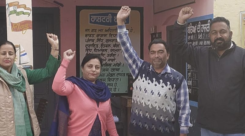 ਜਿਸ ਦੇ ਰੋਸ ਵਜੋਂ ਅੱਜ ਪੰਜਾਬ ਦੇ ਦੋ ਲੱਖ ਕਰਮਚਾਰੀ ਕਾਲੇ ਬਿੱਲੇ ਲਗਾ ਕੇ ਸਰਕਾਰ ਵੱਲੋਂ ਜਾਰੀ ਅਧੂਰੇ ਨੋਟੀਫਿਕੇਸ਼ਨ ਦੀਆਂ ਕਾਪੀਆਂ ਨੂੰ ਸਾੜ ਰਹੇ ਹਨ। ਉਨ੍ਹਾਂ ਇਸ ਤੋਂ ਇਲਾਵਾ 25 ਨਵੰਬਰ ਦੀ ਐੱਨ. ਐੱਮ. ਓ. ਪੀ. ਐੱਸ. ਦੇ ਬੈਨਰ ਹੇਠ ਹੋਣ ਜਾ ਰਹੀ ਦਿੱਲੀ ਵਿਖੇ ਮਹਾਂ ਰੈਲੀ ਵਾਸਤੇ ਲਾਮਬੰਦੀ ਕੀਤਾ ਗਿਆ। ਇਸ ਮੌਕੇ ਅਧਿਆਪਕ ਸਿਮਰਤ ਕੌਰ, ਇੰਦੂ ਸ਼ਰਮਾ, ਰਜਨੀ ਬਾਲਾ ਤੇ ਨਾਮਪ੍ਰੀਤ ਸਿੰਘ ਆਦਿ ਹਾਜ਼ਰ ਸਨ।