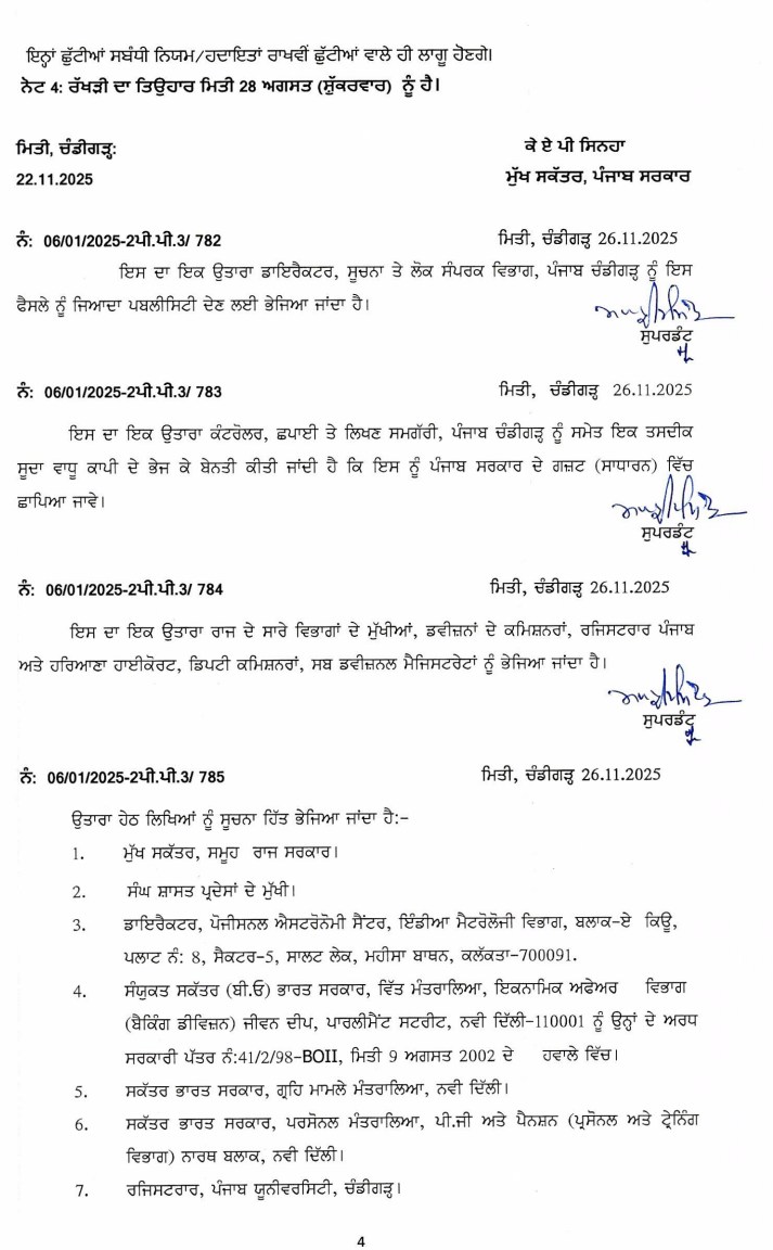 (Holiday Breaking, Punjab Government, 2026 Gazetted Holidays, Official Holiday List, Punjab Administration, Government Offices, Educational Institutions, Media PBN, Chandigarh Update, Punjab News)