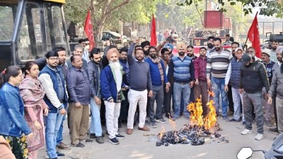ਸੁੰਦਰ ਨਗਰ ਡਵੀਜ਼ਨ ਵਿੱਚ ਪੀ ਐਸ ਈ ਬੀ ਇੰਪਲਾਈਜ ਫੈਡਰੇਸ਼ਨ ਏਟਕ ਦੇ ਡਵੀਜ਼ਨ ਸਕੱਤਰ ਦੀਪਕ ਕੁਮਾਰ, ਟੀ ਐਸ ਯੂ ਦੇ ਡਵੀਜ਼ਨ ਪ੍ਰਧਾਨ ਧਰਮਪਾਲ, ਇੰਪਲਾਈਜ ਫੈਡਰੇਸ਼ਨ ਪਹਿਲਵਾਨ ਦੇ ਜੋਨ ਆਗੂ ਸਰਤਾਜ ਸਿੰਘ ਅਤੇ ਐਮ ਐਸ ਯੂ ਦੇ ਡਵੀਜ਼ਨ ਆਗੂ ਕੁਲਵੀਰ ਸਿੰਘ ਵੱਲੋਂ ਆਯੋਜਿਤ ਅਰਥੀ ਫੂਕ ਮੁਜ਼ਾਹਰੇ ਵਿੱਚ ਪੀ ਐਸ ਈ ਬੀ ਇੰਪਲਾਈਜ ਫੈਡਰੇਸ਼ਨ ਏਟਕ ਦੇ ਜਿਲ੍ਹਾ ਆਗੂ ਗੁਰਪ੍ਰੀਤ ਸਿੰਘ ਮਹਿਦੂਦਾਂ ਅਤੇ ਟੀ ਐਸ ਯੂ ਦੇ ਸਰਕਲ ਪੂਰਬੀ ਦੇ ਪ੍ਰਧਾਨ ਗੌਰਵ ਕੁਮਾਰ ਪੁੱਜੇ। ਅਰਥੀ ਫੂਕ ਮੁਜ਼ਾਹਰੇ ਦੌਰਾਨ ਗੁਰਪ੍ਰੀਤ ਸਿੰਘ ਮਹਿਦੂਦਾਂ ਅਤੇ ਗੌਰਵ ਕੁਮਾਰ ਨੇ ਦੱਸਿਆ ਕਿ ਅੱਜ ਪੰਜਾਬ ਭਰ ਦੇ ਬਿਜਲੀ ਕਾਮਿਆਂ ਵੱਲੋਂ ਉਪਰੋਕਤ ਦੋਵਾਂ ਮੁੱਦਿਆਂ ਕਾਰਨ ਗੇਟ ਰੈਲੀਆਂ ਕਰਕੇ ਕੇਂਦਰ ਸਰਕਾਰ ਦੀ ਅਰਥੀ ਫੂਕੀ ਗਈ ਹੈ ਅਤੇ ਲਾਗੂ ਕੀਤੇ ਲੇਬਰ ਕੋਡਾਂ ਨੂੰ ਰੱਦ ਕਰਨ ਦੇ ਨਾਲ ਨਾਲ ਬਿਜਲੀ ਬਿੱਲ 2025 ਦਾ ਵੀ ਵਿਰੋਧ ਕੀਤਾ ਗਿਆ ਹੈ।