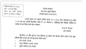 ਚੰਡੀਗੜ੍ਹ, 27 ਨਵੰਬਰ 2025 (Media PBN)- ਪੰਜਾਬ ਕੈਬਨਿਟ (Punjab Cabinet) ਦੀ ਅਹਿਮ ਮੀਟਿੰਗ 28 ਨਵੰਬਰ ਨੂੰ ਹੋਣ ਜਾ ਰਹੀ ਹੈ। ਇਹ ਮੀਟਿੰਗ ਸੂਬੇ ਦੇ ਸੀਐੱਮ ਭਗਵੰਤ ਮਾਨ ਦੀ ਅਗਵਾਈ ਵਿੱਚ ਸੀਐੱਮ ਹਾਊਸ ਚੰਡੀਗੜ੍ਹ ਵਿਖੇ ਸਵੇਰੇ ਸਾਢੇ 11 ਵਜੇ ਹੋਈ।
