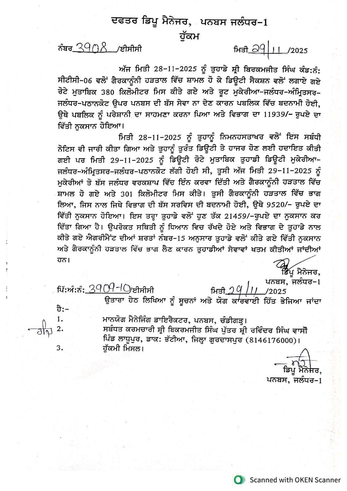 ਪੰਜਾਬ ਸਰਕਾਰ ਵੱਲੋਂ PRTC ਮੁਲਾਜ਼ਮਾਂ ਲਈ ਤਾਨਾਸ਼ਾਹੀ ਫ਼ਰਮਾਨ ਜਾਰੀ! DTF ਨੇ ਪਾਈ ਹੁਕਮਰਾਨ ਨੂੰ ਝਾੜ