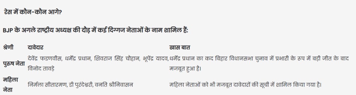 ਇਹੀ ਕਾਰਨ ਹੈ ਕਿ ਲੀਡਰਸ਼ਿਪ ਤਬਦੀਲੀ ਪ੍ਰਕਿਰਿਆ ਨੂੰ ਜਿੰਨੀ ਜਲਦੀ ਹੋ ਸਕੇ ਅੰਤਿਮ ਰੂਪ ਦਿੱਤਾ ਜਾ ਰਿਹਾ ਹੈ। ਪਿਛਲੇ ਇੱਕ ਸਾਲ ਤੋਂ ਲਟਕ ਰਹੀ ਰਾਸ਼ਟਰੀ ਪ੍ਰਧਾਨ ਦੀ ਚੋਣ ਹੁਣ ਆਪਣੇ ਆਖਰੀ ਪੜਾਅ ਵਿੱਚ ਹੈ। 29 ਰਾਜਾਂ ਵਿੱਚ ਸੰਗਠਨਾਤਮਕ ਚੋਣਾਂ ਪੂਰੀਆਂ ਹੋ ਗਈਆਂ ਹਨ; ਸਿਰਫ਼ ਉੱਤਰ ਪ੍ਰਦੇਸ਼, ਕਰਨਾਟਕ ਅਤੇ ਹਾਲ ਹੀ ਵਿੱਚ ਖਾਲੀ ਹੋਏ ਬਿਹਾਰ ਰਾਜ ਪ੍ਰਧਾਨ ਦੇ ਅਹੁਦਿਆਂ ‘ਤੇ ਫੈਸਲਾ ਹੋਣਾ ਬਾਕੀ ਹੈ।